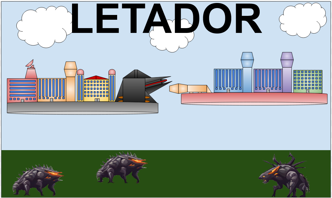 Letador ist ein Strategie-Spiel, wo man seine eigene Stadt baut und versucht seine Wirtschaft aufrecht zu halten. Ziel des Spiels ist es 10 Punkte zu sammeln und eine Kommandozentrale zu bauen bevor der Gegner es tut. Wer keine Punkte mehr hat verliert. Um Punkte zu bekommen, müsst ihr viele Häuser und andere Gebäude (zum Beispiel Fabriken) bauen. Um etwas zu bauen oder zu kaufen, müsst ihr einfach die Materialien bezahlen, die bei Kosten (auf der Karte von was ihr bauen/kaufen wollt) stehen. Es gibt zwei Level (Kapitel).